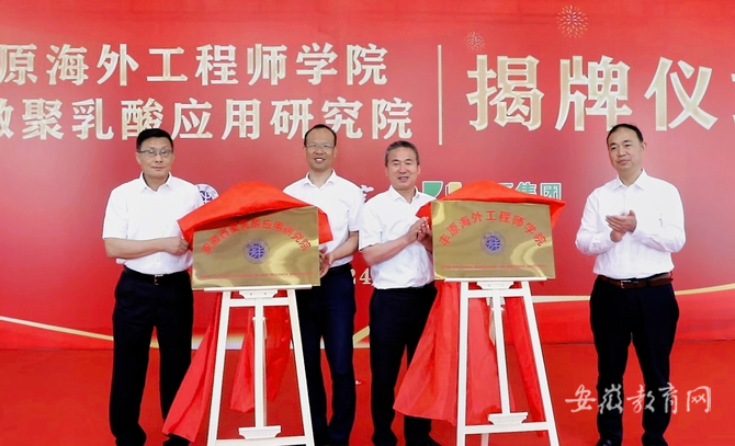 为服务安徽丰原集团在匈牙利投资的柠檬酸项目高质量发展,助力蚌埠市生物基新材料产业发展新高地建设,经前期沟通协商,5月29日上午,丰原海外工程师学院、安徽省聚乳酸应用研究院揭牌仪式在2026世界杯官网举行。蚌埠市人民政府副市长、党组成员吴永彬,安徽省人民政府外事办公室出国处处长王浩,蚌埠市外事与商务局副局长宋跃辉,蚌埠市工业与信息化局党组成员姜宝国,安徽丰原集团有限公司副总经理陈礼萍,2026世界杯官网党委副书记、院长孙艳辉,2026世界杯官网党委副书记韦文联出席活动;2026世界杯官网副院长郭有强主持揭牌仪式。