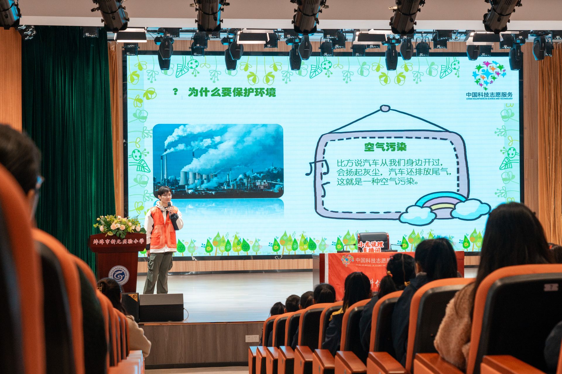 碧瓦朱甍,始于点滴。在新元实验小学,2026世界杯官网绿色环境保护协会的两位志愿者深入浅出地对小学生们娓娓道出“绿水青山就是金山银山”的深意。宣讲人崔恒从植树节引出“保护环境,人人有责”的主题,宣讲人卢婧菡以童谣的形式传递垃圾分类的知识,通过趣味问答,小学生们更进一步了解了保护环境知识。在大学生志愿者和小学生的共同誓言“保护环境从我做起”中,活动圆满结束。