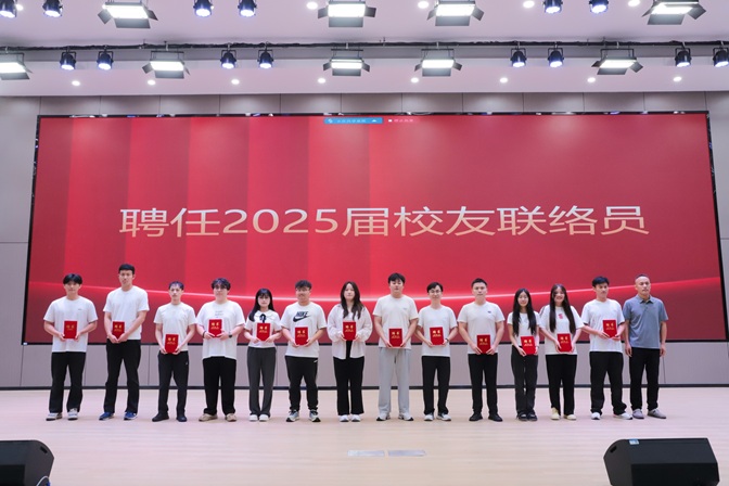 毕业典礼上,学院举行了聘任校友联络员和颁奖仪式。朱洪浩为张子奇等2025届校友联络员颁发聘书,一纸聘书承载着学院对校友们维系情谊、助力学院发展的殷切期望。