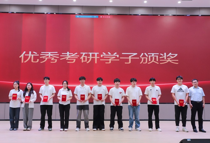 副院长李现伟为朱宏涛等考研学子代表授予奖项,激励他们在学术征途上勇攀高峰。