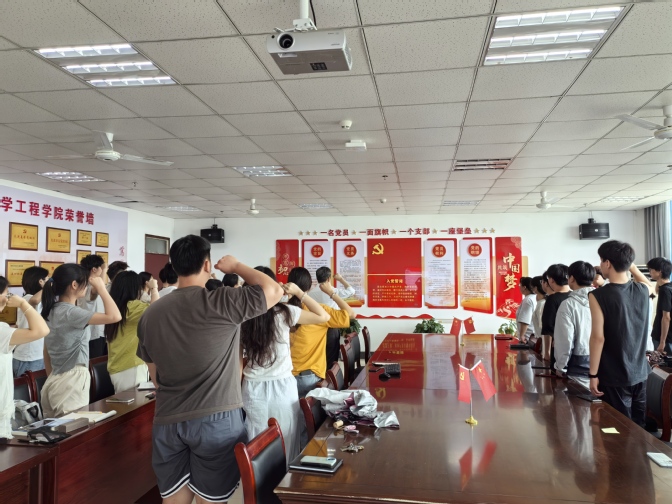 最后,全体学生党员在朱银邦的带领下,重温入党誓词,铿锵誓言响彻会场。