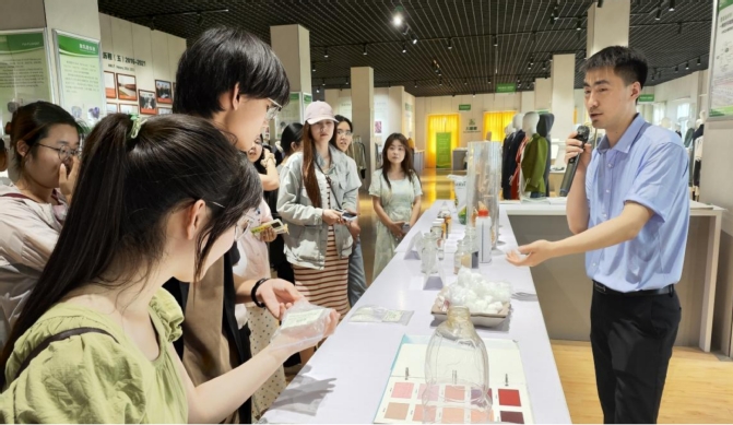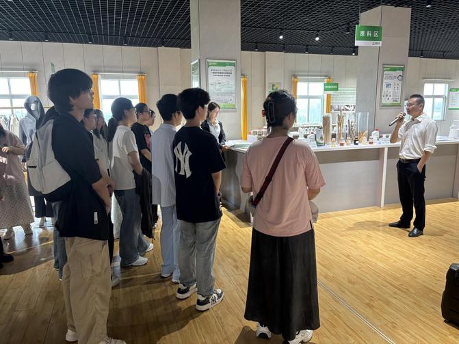 丰原集团法律部副部长汪明选和人事部副部长石化龙热情接待了师生一行,并组织了专门的参观和讲解。同学们深入了解了丰原集团在新型材料研发与应用方面的成果,特别是聚乳酸材料这一创新成果。据介绍,聚乳酸PLA作为一种绿色环保的新型材料,原料来源于玉米、红薯、农作物秸秆等可再生资源,可替代传统化工材料,已广泛应用于餐具、家居、服饰等生活的方方面面,不仅为消费者带来了更健康、环保的产品,也为相关产业的可持续发展提供了新的解决方案;同学们通过实地观摩和亲身体验,直观感受到了新材料科技的魅力和应用潜力。