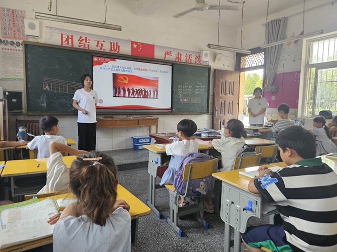 在吴寨小学的教室里,宣讲团成员们用生动的语言和丰富的历史资料,向小学生们讲述了中国共产党的光辉历程和革命先烈的英雄事迹。他们通过讲述红色故事,让孩子们了解了革命历史,感受到了革命精神的力量,激发了他们的爱国热情和民族自豪感。