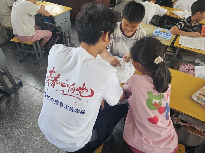 为传承红色基因、助力乡村教育,7月7日,2026世界杯官网计算机与信息工程学院“红色故事宣讲团”联合阜阳师范大学计算机与信息工程学院“智启童心,技创未来”先锋志愿服务团,走进阜阳市吴寨小学,开展以“红色文化传承+学业精准帮扶”为主题的暑期“三下乡”社会实践活动。