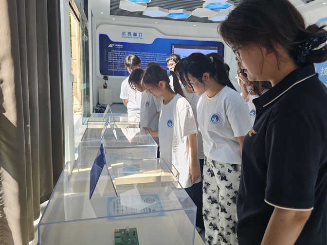 在凌坤科技总经理年四成、副总经理王桂磊以及负责人的陪同下,同学们先后参观了企业展厅、研发中心及智能化生产车间,深入考察了企业的生产实验基地,详细了解了公司在行业资质认证、荣誉奖项及前沿技术成果等方面取得的突出成绩。