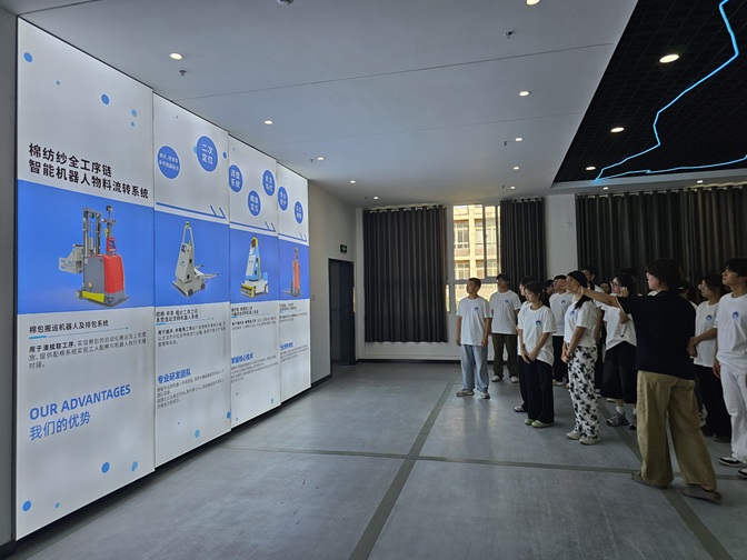 座谈会上,与会师生与企业代表共同观看了凌坤科技企业宣传片以及棉纺纱全工序链物料流转机器人产品,凌坤科技作为高新技术企业,拥有专业的机器人研发团队,荣获安徽省高层次科技人才团队荣誉。硕博士占比高达70%,其中博士6人,包括省级技术领军人才特支计划成员。是棉纺领域唯一具备全流程工序段间物料柔性流转的设备制造商,并入围中国棉纺织协会第一批“数字化转型解决方案及应用案例”的成套系统供应商名单。