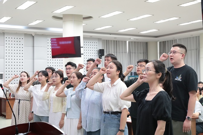 8月25日下午,世界杯官网在行政楼视频会议室举行2025年辅导员暑期集中培训班开班暨新聘辅导员入职宣誓仪式。校党委书记陈国龙出席仪式并讲话,校党委副书记韦文联主持会议。各二级学院党委书记、副书记,全体专职辅导员以及党委学生工作部全体工作人员参加仪式。