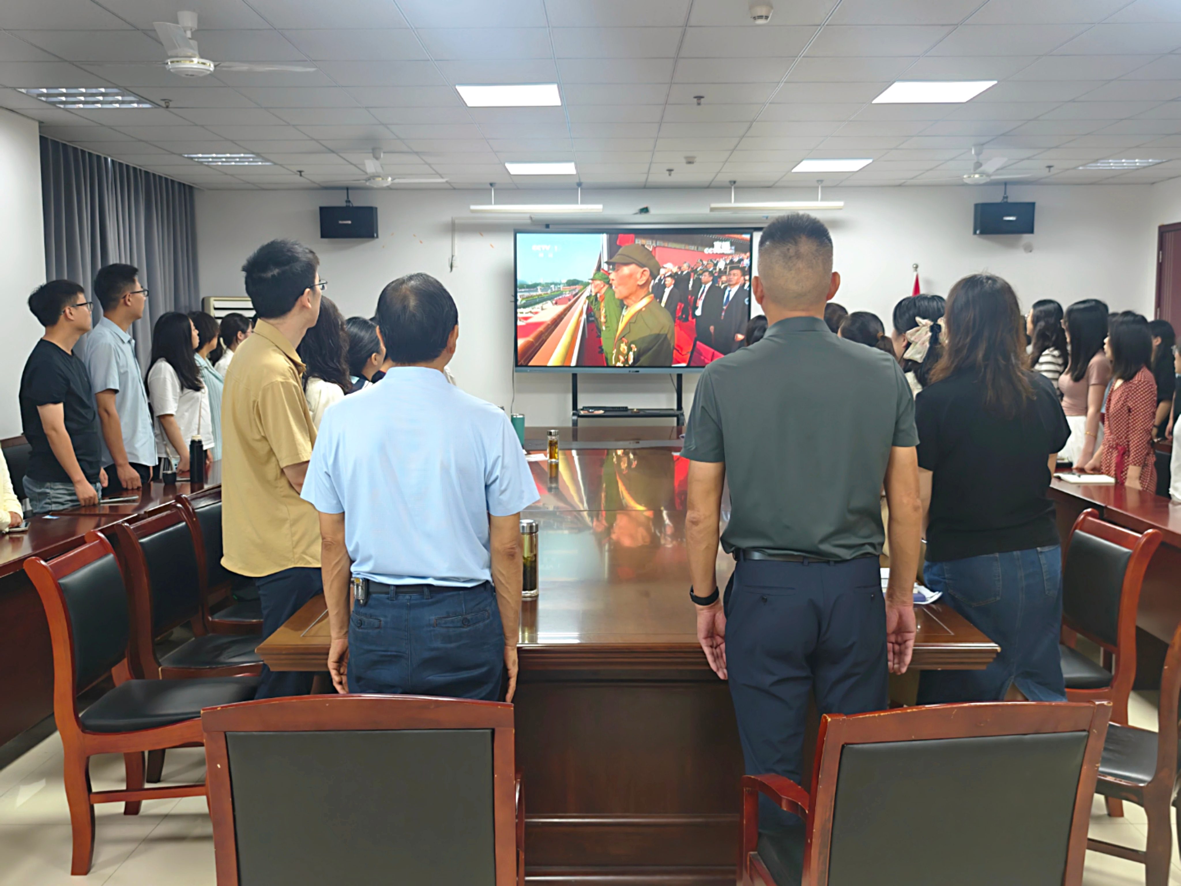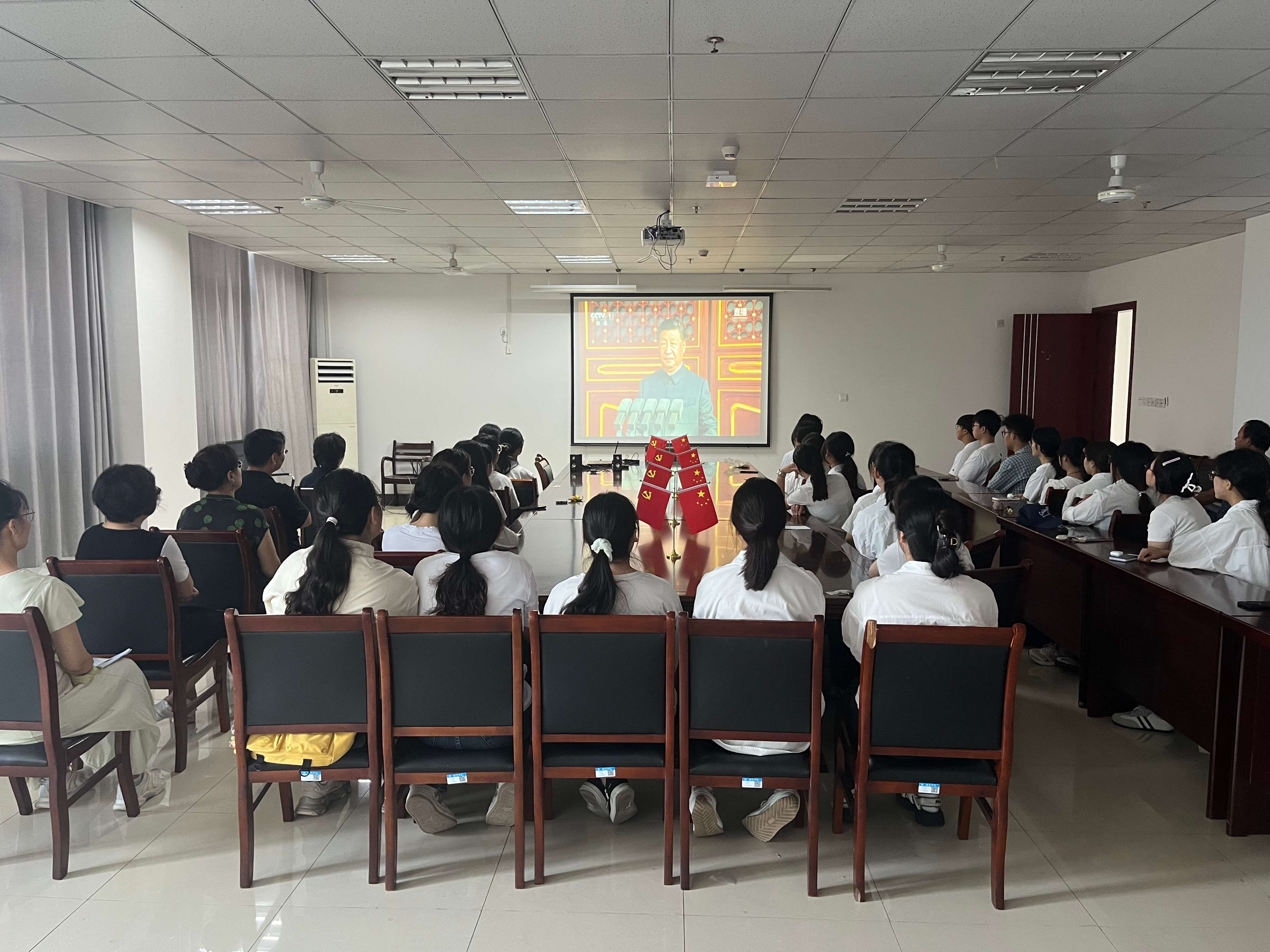 音乐与舞蹈学院党委书记吕部与师生们共同观看此次大会直播,他表示,“现场演奏了多首经典抗战曲目,前排设置80名礼号手,寓意抗战胜利80周年,令人印象深刻。未来我们将继续弘扬爱国主义精神,传承红色基因,努力培养更多有理想、有担当、有音乐素养的优秀人才,为推动文化事业的繁荣发展贡献自己的力量。”