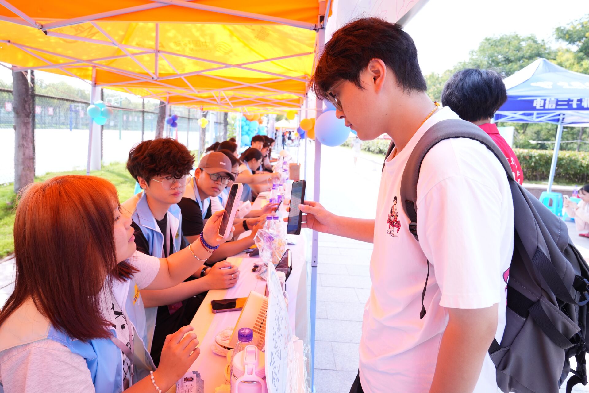 经济与管理学院的展台布置着仿真商业图表、经典案例手册,艺术设计学院独立设计的拟人化“艺小设”形象在展牌上笑着挥手,外国语学院的展台上,英文版的“欢迎新同学”标语卡片错落悬挂,文学与教育学院的展台风车悠悠转动,新生们拿着印着“执笔逐光”的祈福贺卡,在展台前笑盈盈拍照打卡,音乐与舞蹈学院的展牌印着校歌《青青子衿》的乐谱,现场热情的歌声引得新生驻足聆听……每个学院都是精心策划、用心呈现,为新生打造一场浪漫的仪式,传递给新生一份家的温暖和美好。