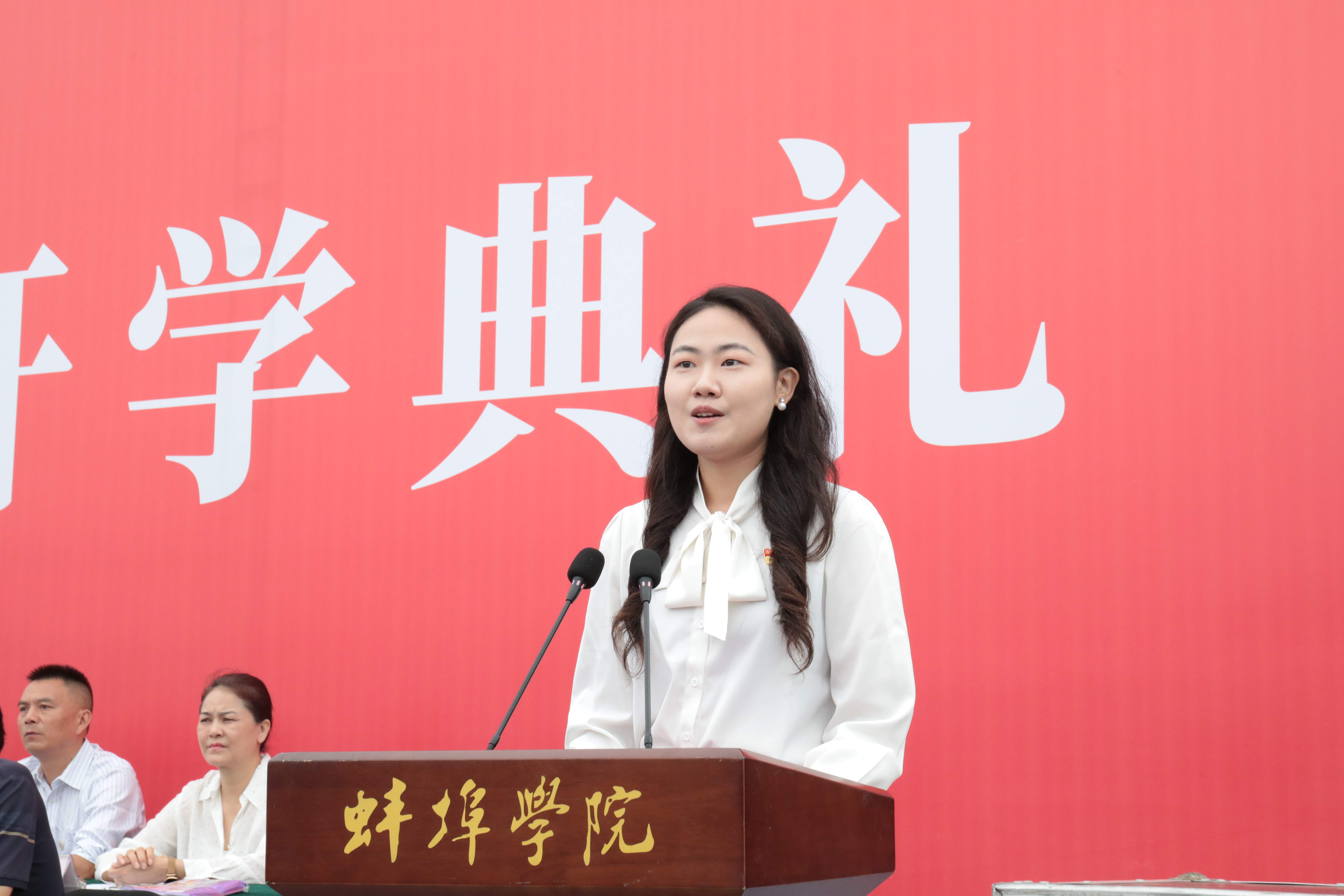 教务处副处长盛蒂作为教师代表发言。她表示在未来四年里,教师将作为学生的“同行者”“守护人”和“鼓掌者”,陪伴学生共同成长。她鼓励新生将个人发展与国家发展相结合,通过积极实践实现梦想。