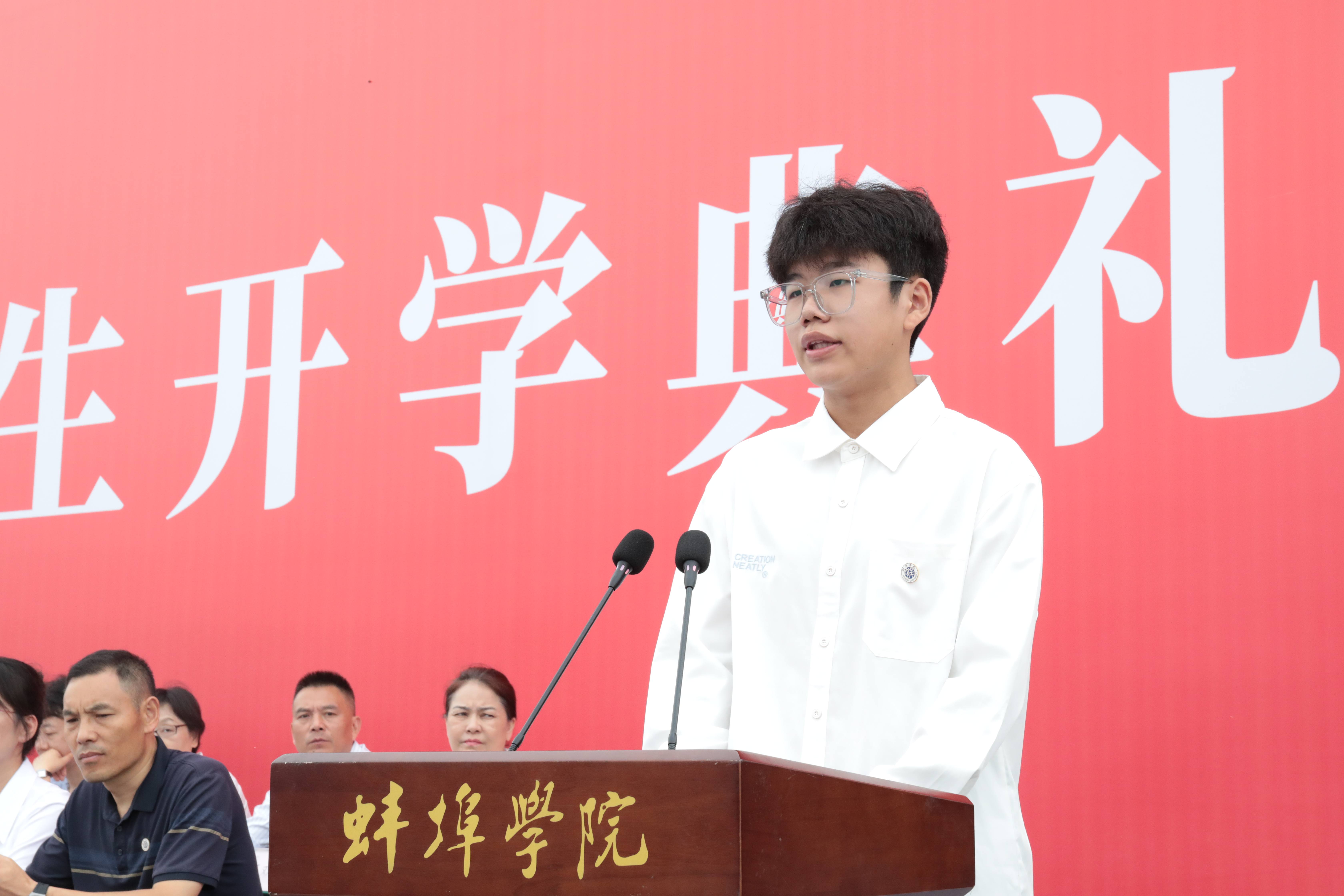 电子与电气工程学院王旭尧代表新生发言。他以“想做什么、能做什么、将来会做什么”的三重叩问,勉励同学们成为课堂求知者、图书馆里的读书人与操场追光者,以自律与思考让理想落地。