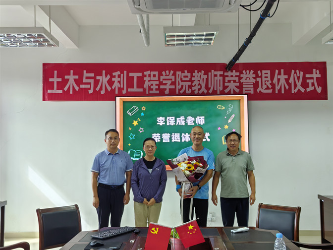接着学院举办了李保成老师荣誉退休仪式,院领导高度赞扬了李保成老师在教学和学生培养等方面的辛勤付出。李保成老师发表了深情退休感言,分享了他在学院工作的难忘经历,并对年轻教师寄予了殷切期望。年轻教师代表欧元超发言,表达了对李保成老师的敬意与感谢,表示将传承和发扬李保成老师的优良品质和敬业精神。