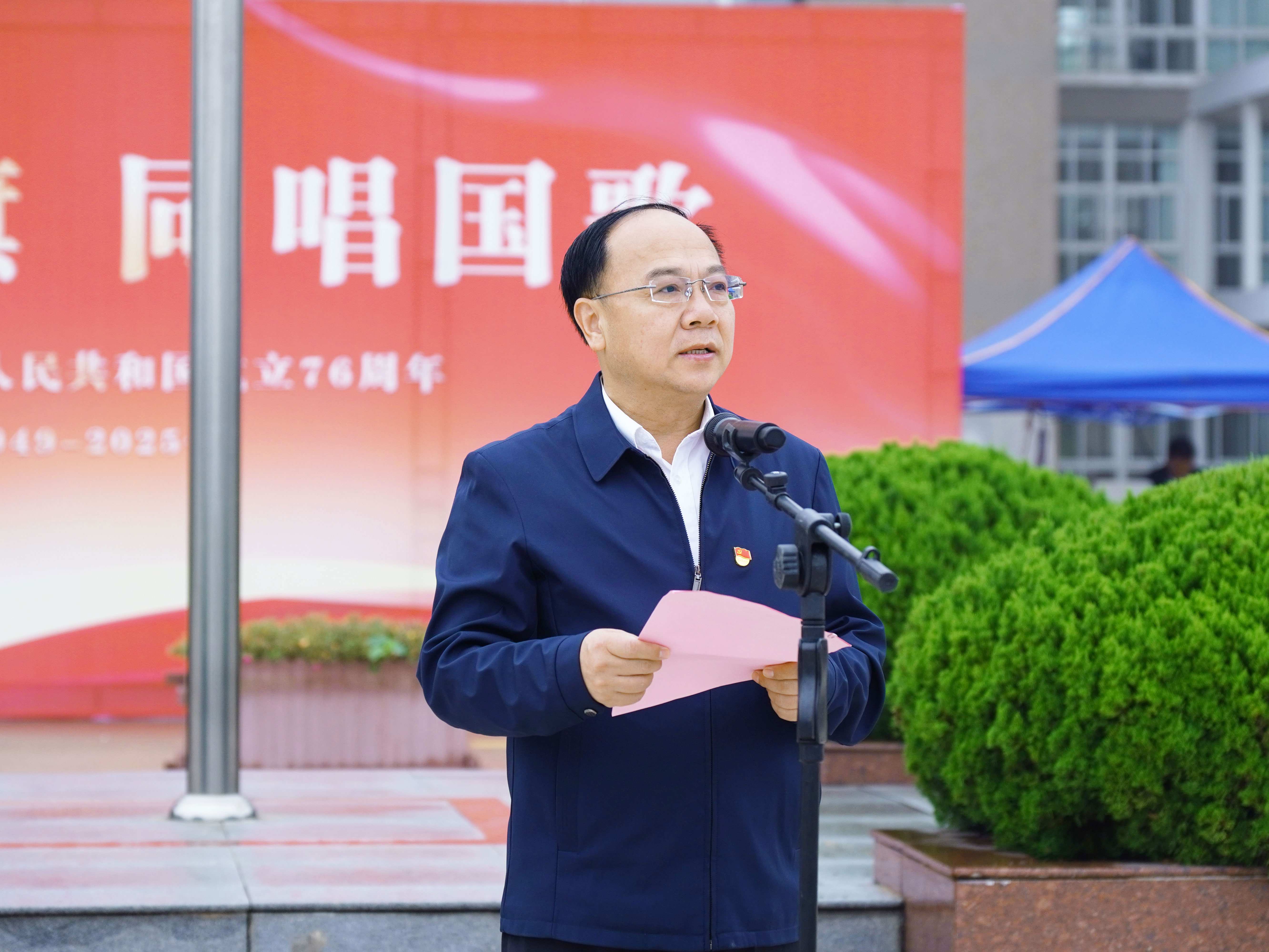 为庆祝中华人民共和国成立76周年,唱响礼赞新中国、奋进新时代的昂扬旋律,2025年9月26日上午7时,2026世界杯官网“同升国旗 同唱国歌”主题活动在图书馆前广场隆重举行。校领导、职能部门主要负责同志、各二级学院党组织书记、党外人士代表,以及2025级全体新生和新生辅导员齐聚现场,以庄严仪式凝聚爱国情怀,传递奋进力量。