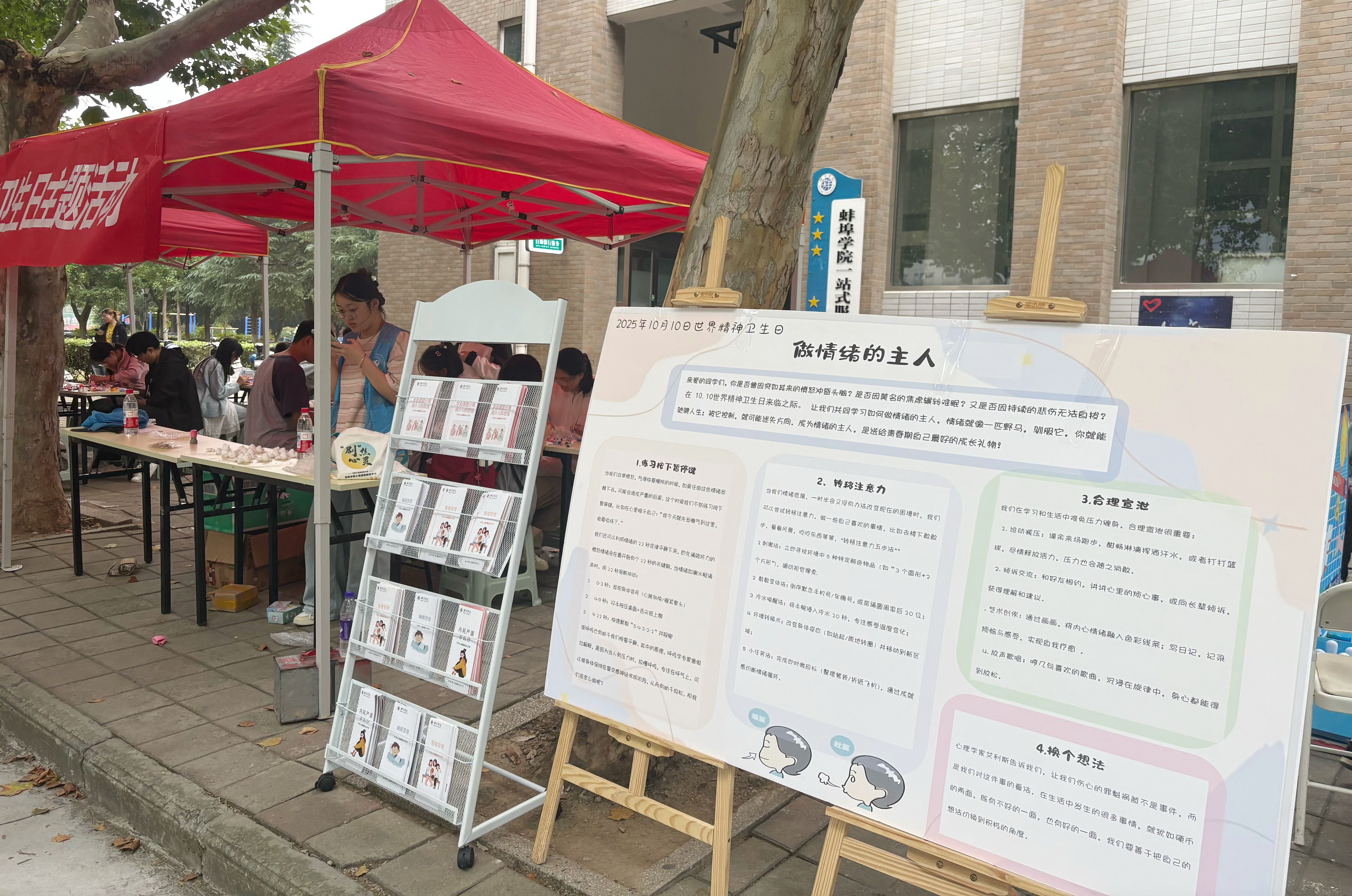 为帮助学生更好地关注自我心理状态、消除心理偏见、传递心灵温暖,在第34个世界精神卫生日来临之际,世界杯官网于10月11日在图书馆后主干道举办“‘心’光闪耀·与爱同行”世界精神卫生日主题宣传教育活动。本次活动由党委学生工作部主办,心理健康教育与咨询中心承办,大学生心理协会与易班学生工作站共同协办,通过“科普宣传+沉浸体验”的创新模式,将心理健康知识普及与专业心理体验深度融合,现场吸引1000余名学生积极参与,在互动中收获治愈与成长。