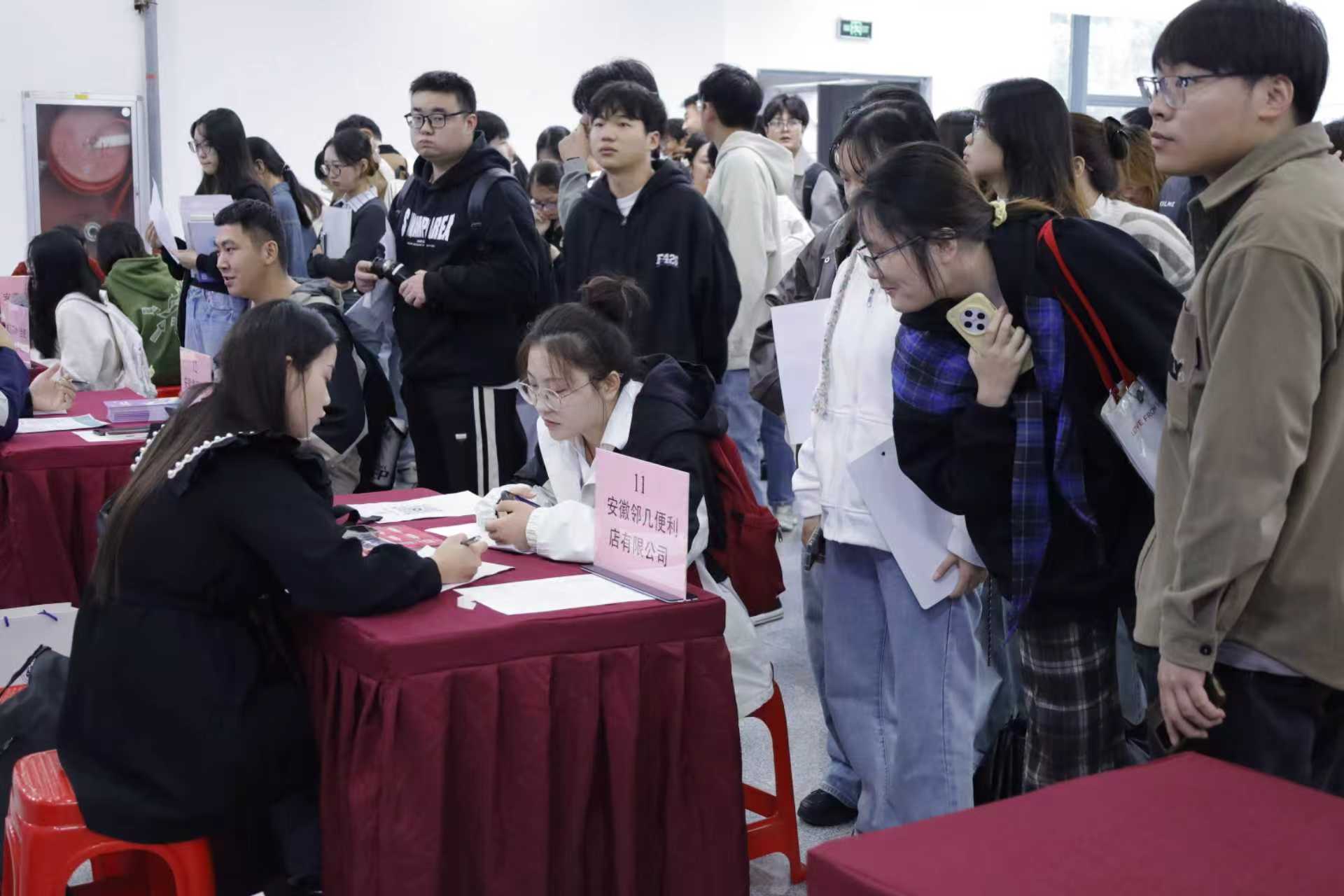 10月15日上午,学校于F楼就业招聘大厅开展“合肥经开区、新站高新区校园组团招聘会”。两区组织人事局相关负责同志带队。校长张亚新,党委副书记韦文联到场调研并指导工作。各学院党政领导班子成员,全体毕业班辅导员,以及2000名毕业生参加。
