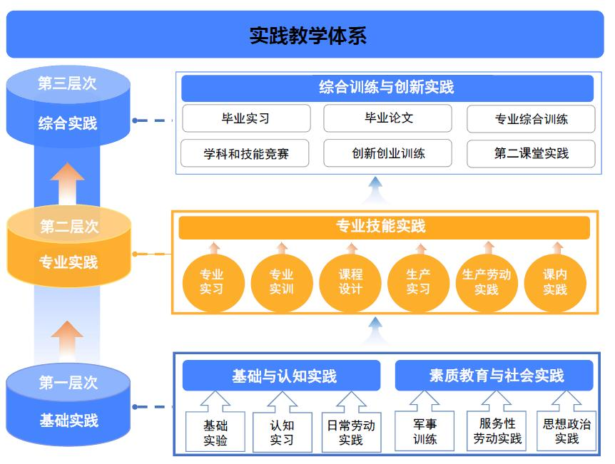学校坚持以学生为中心、成果为导向,持续推进人才培养模式创新,强化实践教学与创新创业教育。2021年、2024年两次系统修订人才培养方案,明确最低实践教学学分占比。2024版培养方案中,实践教学学分占总学分比例平均为:工学类专业36.08%,理学类专业31.94%,人文社科类专业37.65%,艺术类专业54.61%。强化劳动教育、体育、美育课程设置,构建“五育并举”课程体系。