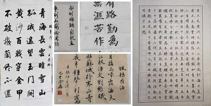 活动按计划有序推进,各环节彰显党建工作细致性与组织力:10月19日至20日为报名阶段,学生党员主动引导同学有序报名,带动全院参与热情;10月21日至25日进入作品比拼环节,参赛选手围绕经典诗词、青春励志名言警句及红色文化主题内容,以软笔、硬笔两种形式创作。楷书工整端庄中透着少年沉稳,行书流畅洒脱里藏着青春朝气,作品既延续传统笔墨的雅致韵味,又融入当代青年对文化传承与红色精神弘扬的独特思考,实现传统文化与红色基因的同频共振。