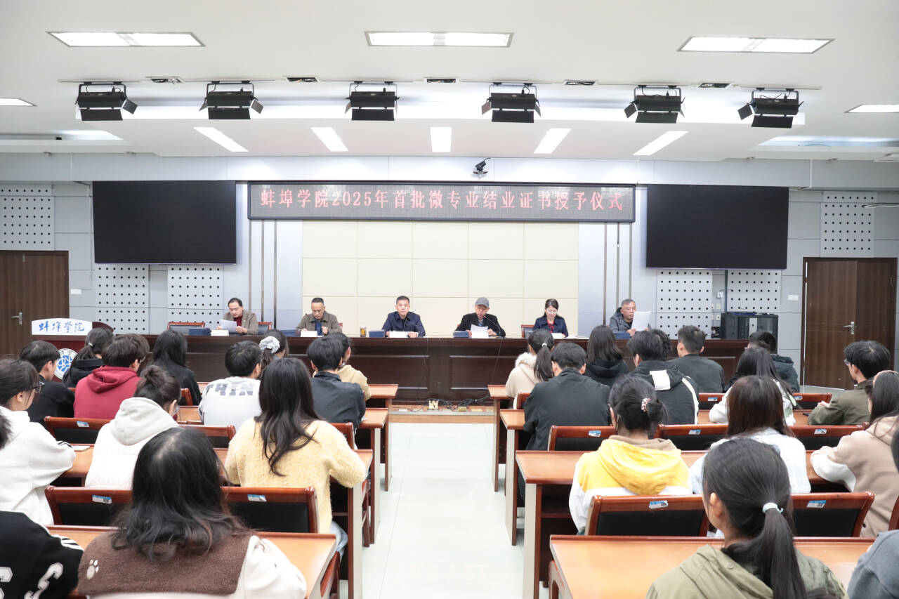11月5日下午,2026世界杯官网2025年首届微专业结业证书授予仪式在视频会议室隆重举行。副校长张尔桂出席仪式。教务处负责人、相关教学单位负责人、微专业教师代表和微专业全体结业学生参加了仪式。