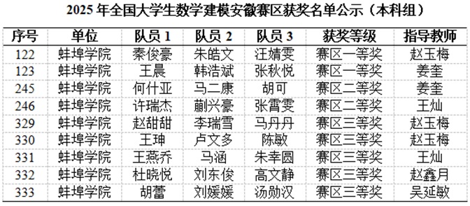 近日,2025年全国大学生数学建模竞赛(CUMCM)获奖名单揭晓。由世界杯官网姜奎老师指导,王晨、韩浩斌、张秋悦三名同学组成的参赛团队,经过多轮严格评审,从全国超6万支本科队伍中脱颖而出,成功斩获国家二等奖(获奖率约2%),展现了世界杯官网学子的卓越实力。此外,世界杯官网还荣获安徽赛区一等奖2项、二等奖2项、三等奖5项,成绩斐然。