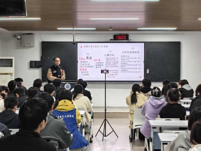 在分享环节中,四位主讲人结合各自的成长轨迹与实践经历,从多元视角系统阐释了资源整合与自我提升的有效路径。23电气工程2班张彬彬同学聚焦学科竞赛体系,系统梳理了我院各类竞赛项目的基本架构、赛道设置与时间节点,并就近两年学院获奖情况作了详细介绍,进一步讲解了大学生创新创业项目的申报流程及参赛策略;23机器人1班方柏煜同学以个人参赛初心与成长历程为引,深入剖析了赛事选择与个人发展方向之间的契合关系,阐释了相关竞赛所需的核心技术能力,并分享了备赛阶段的实用方法与关键注意事项,以“你只需一直努力,东边不亮西边亮”激励同学们勇于探索、持之以恒;23电气工程1班郑鸿洁同学围绕“资源高效利用”与“第二课堂学分体系”展开论述,结合专业学习与课余实践,传授了如何依托校园平台拓展综合能力的有效途径;23自动化1班贾曜聪同学则从学习方法、应试策略到竞赛参与等多个层面,系统总结了自身学习经验,为在座同学提供了极具参考价值的学习建议。四位同学的分享内容详实、逻辑清晰,现场气氛热烈,互动积极。与会同学纷纷表示,通过此次分享不仅掌握了资源整合与自我管理的具体方法,更在精神层面受到深刻激励,对未来的学业规划与发展方向有了更为明确的认知。