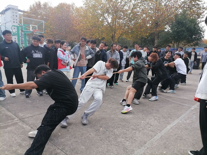 当比赛开始的哨声响起,队员们全都紧握着绳子,憋足了劲把绳子往后拉。同学们在旁边为自己的班级加油呐喊。比赛场面扣人心弦,难分胜负。双方在经过几秒的战斗之后,伴随着再一次的哨声响起,赛场上随即响起了一片胜利的欢呼声,24电子信息获得冠军。