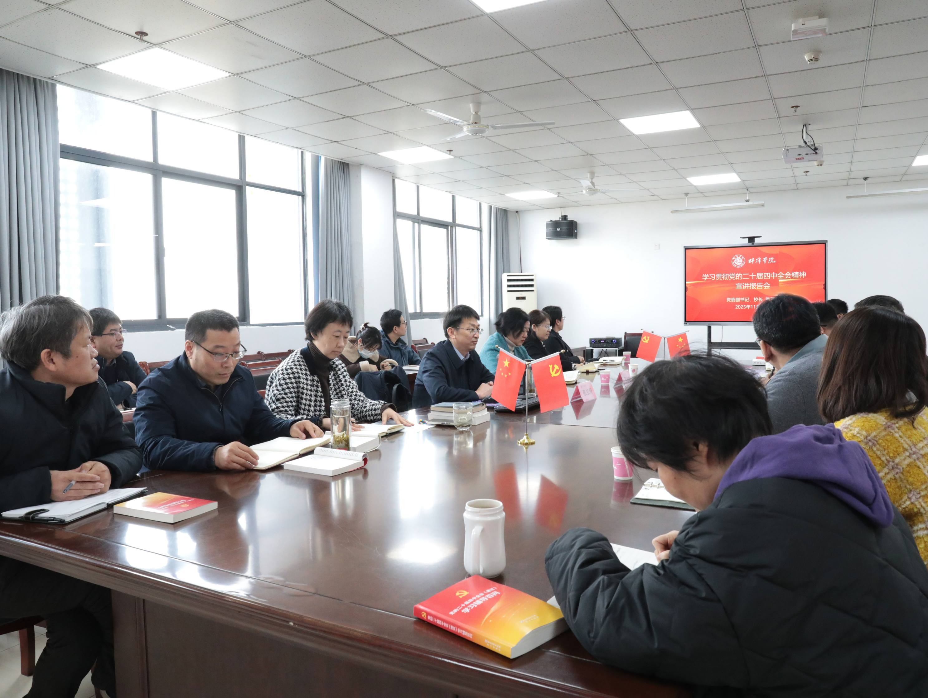 为深入学习贯彻党的二十届四中全会精神,根据学校党委统一部署,11月27日上午,校长张亚新在综合楼F1514会议室作题为“锚定三位一体战略,以高质量发展筑就强国基石”的宣讲报告,经济与管理学院、材料与化学工程学院师生代表60余人聆听学习。