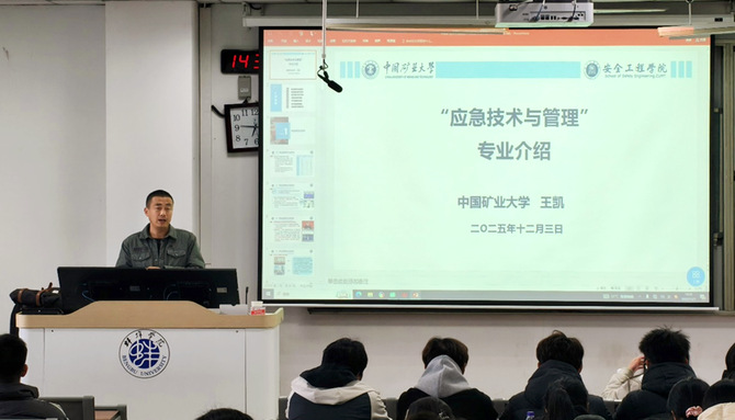 座谈会后,两位专家分别围绕各自研究领域,为学院师生奉献了两场精彩的专题报告。王凯的《应急技术与管理专业介绍》报告,分享了中国矿业大学在应急技术与管理专业领域的建设经验与学科优势。他结合典型实践案例,详细阐述了“厚基础、强实践、重创新”的人才培养理念与模式,重点分析了应急管理中的监测预警、指挥协调、资源调度等关键环节的技术进展,并对智能化、精准化应急技术的未来发展趋势进行了展望,为学院应急技术与管理专业的学科内涵建设提供了宝贵的理论指导,为课程体系建设与实践教学模式的创新提供了实践参考。