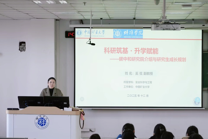 奚弦以《科研筑基·升学赋能——碳中和研究院介绍与研究生成长规划》为题,聚焦国家“双碳”战略背景下碳中和研究院的前沿研究与创新平台建设。她结合个人成长经历,毫无保留地与在场学生分享了如何夯实科研基础、选择研究方向、规划学业生涯以及培养科研能力等实用经验。讲座贴近学生实际,深入浅出地讲解了学术道路上的关键问题,引发了同学们对于科研探索的浓厚兴趣,坚定了他们继续深造的信心。