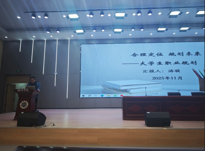 在生涯发展与心理建设方面,学院“竞航职引”辅导员工作室举办职业生涯规划专题讲座,工作室负责人汤骏结合学院近三年就业与考研数据,从自我认知、职业探索、目标设定与路径实施四个维度,系统指导学生进行学业与职业规划,并详细介绍了学科竞赛的备赛策略。12月2日,学院特邀蚌埠医科大学马长征老师开展心理健康专题指导,以“从‘心’启航,学路阳光”为主题,通过互动问答解析大学生常见心理适应问题,并引入积极心理学PERMA模型,引导学员培育积极情绪、提升心理韧性,助力其以健康心态投入大学生活。