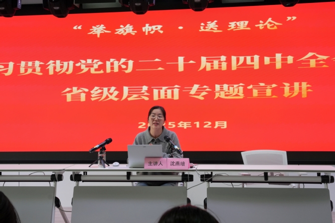 沈燕培深耕党史党建与马克思主义中国化研究领域二十载,累计开展基层宣讲500场次以上,其宣讲报告曾获评中宣部全国优秀理论宣讲报告,擅长以通俗易懂的语言、鲜活生动的阐释让理论入脑入心。此次宣讲中,她紧扣全会主题展开系统解读,逻辑清晰、重点突出。