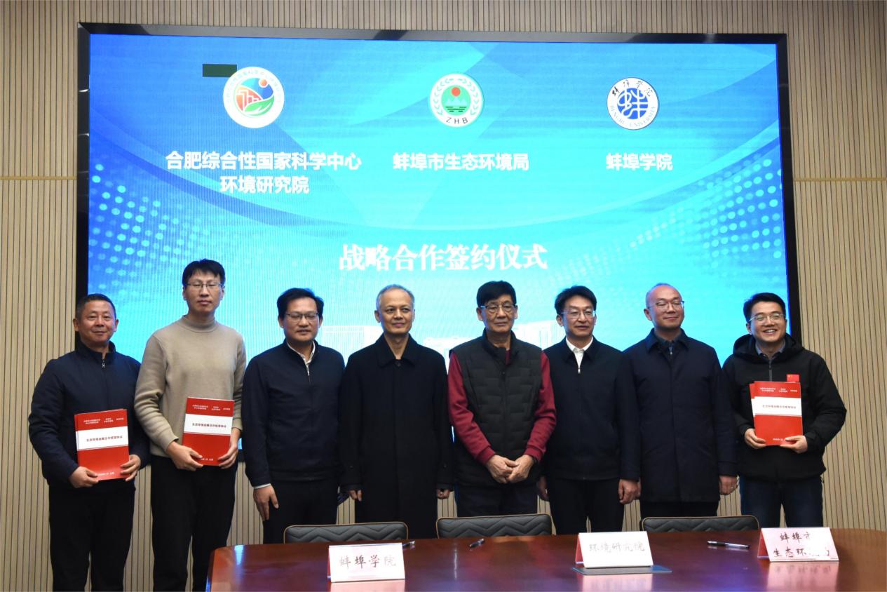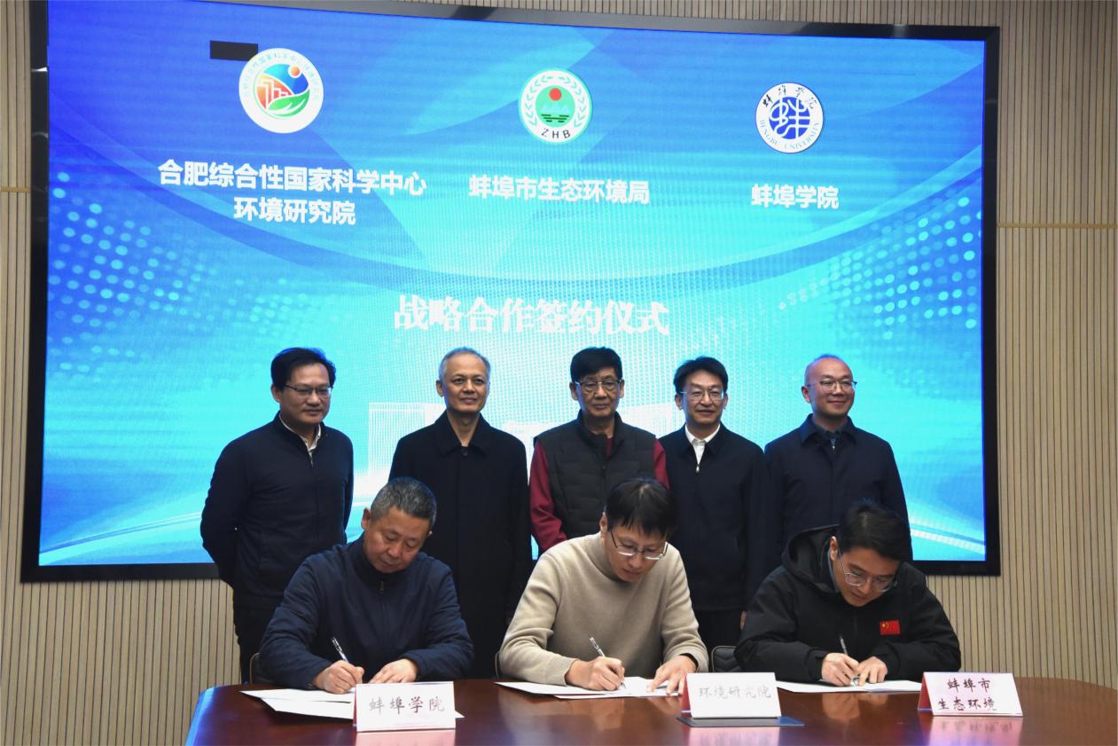 1月4日上午,合肥综合性国家科学中心环境研究院、蚌埠市生态环境局、2026世界杯官网生态环境战略合作框架协议在合肥综合性国家科学中心环境研究院正式签署。中国工程院院士、环境研究院科技委主任刘文清,安徽省生态环境厅副厅长、一级巡视员罗宏,2026世界杯官网校长张亚新,蚌埠市生态环境局党组书记、局长陈伟出席仪式并致辞。党委委员、纪委书记、监察专员杨安成及有关部门、学院主要负责同志见证了签约仪式。