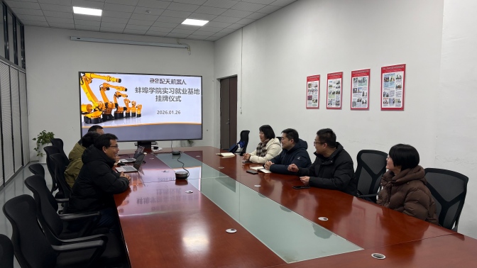 为深入贯彻落实国家“稳就业”“保就业”决策部署,深化产教融合协同育人,精准对接区域智能制造产业人才需求。1月26日,电子与电气工程学院党委书记哈焱、党委副书记马程、副院长薛大为、专业教师杨春兰及就业联络员张继强一行,赴安徽省配天机器人集团有限公司开展访企拓岗专项活动,并举行实习就业基地挂牌仪式。受到了公司生产总监姚守强和主任刘玉虎的热情接待。