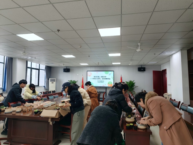 阳春三月,芳华灼灼。为庆祝2026年“三·八”国际妇女节,丰富学院女职工精神文化生活,3月4日中午,文学与教育学院在学院会议室举办“指尖生趣,致敬芳华——多肉手工DIY,绽放巾帼风采”主题活动,学院全体女职工参与。