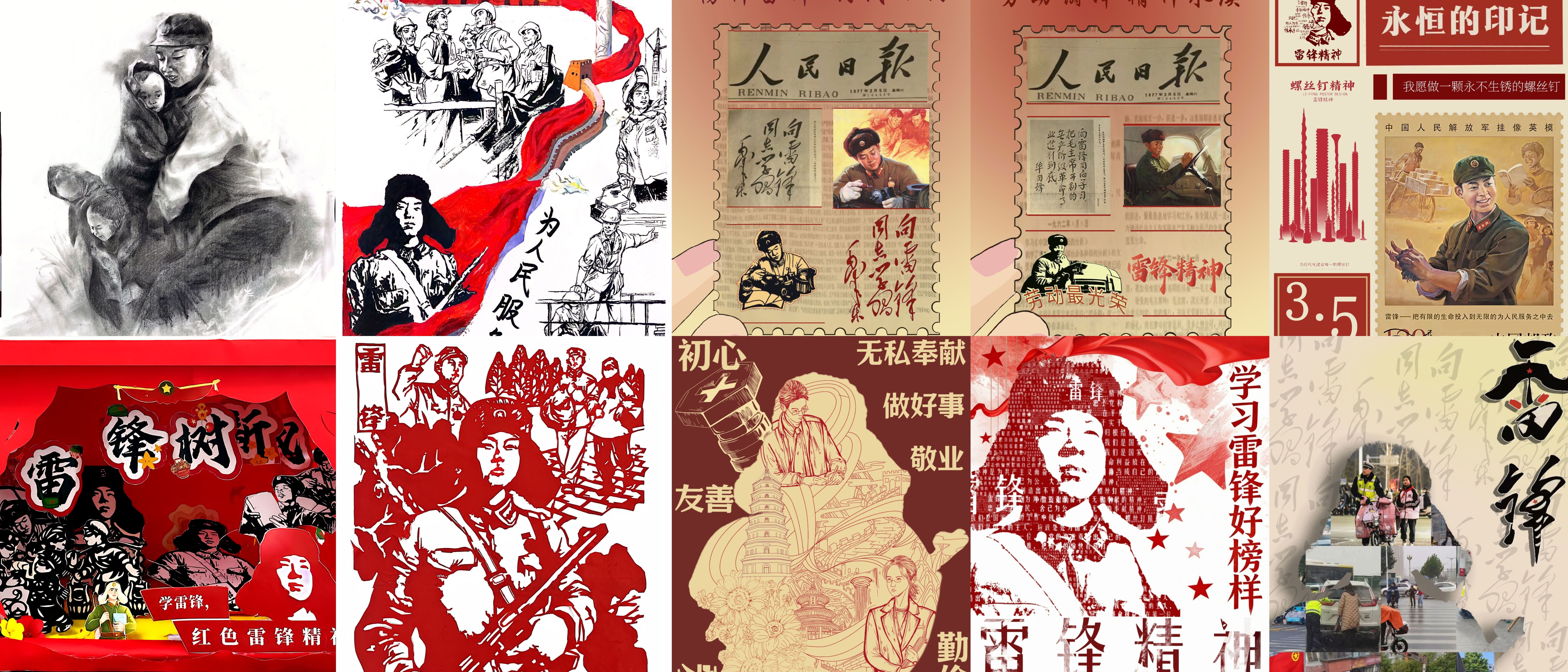 本次大赛共设置海报设计赛道与实物设计赛道两大类别,鼓励同学们结合专业特长,以创意设计诠释雷锋精神,用视觉语言展现青年担当。海报设计赛道中,选手们通过手绘、数字绘画、平面设计等形式创作,作品构图新颖、寓意深刻,巧妙融合雷锋形象、志愿场景等元素,展现出青年学子积极向上的精神风貌。实物设计赛道注重实践与创意,同学们运用水彩、剪纸、立体装置等形式精心创作,将雷锋精神融入可感可触的作品之中,实现了思想性与艺术性的统一,既展现了扎实的专业能力,也表达了对雷锋精神的致敬与传承。