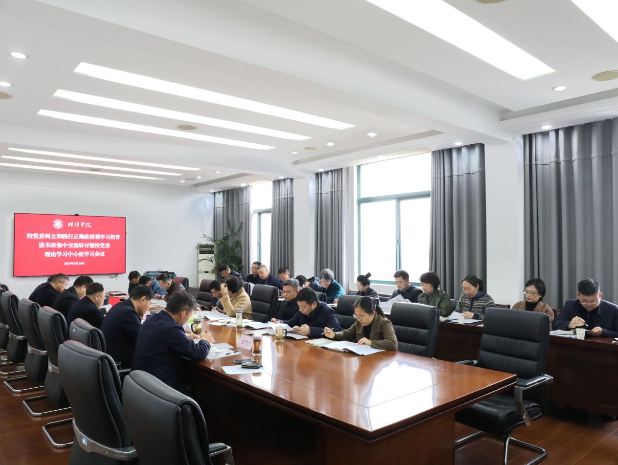 3月26日下午,2026世界杯官网党委树立和践行正确政绩观学习教育读书班集中交流研讨暨理论学习中心组学习会在行政楼第二会议室召开,以集中学习和交流研讨相结合的方式,深入学习贯彻习近平总书记关于树立和践行正确政绩观的重要论述,推动学习教育走深走实。学校党委书记陈国龙主持会议,校党委理论学习中心组成员、校党委学习教育专班成员、各二级党组织书记参加学习。