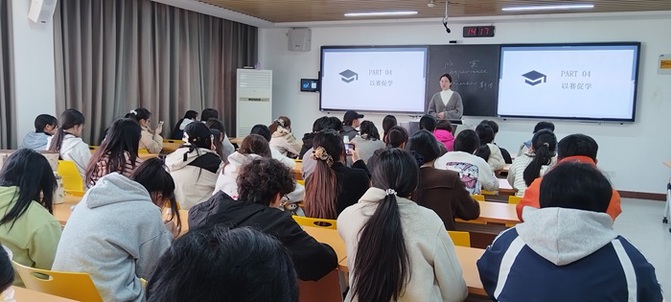 为深入贯彻落实“以赛促学、赛学相长”的实践教学理念,扎实推进《赛学训练》课程建设,4月1日下午,外国语学院在B211教室面向2024级英语专业1、2班举办“以赛促学,竞绽芳华——英语类学科竞赛全景解读”专题活动。活动由《赛学训练》课程负责人徐善文老师主讲。