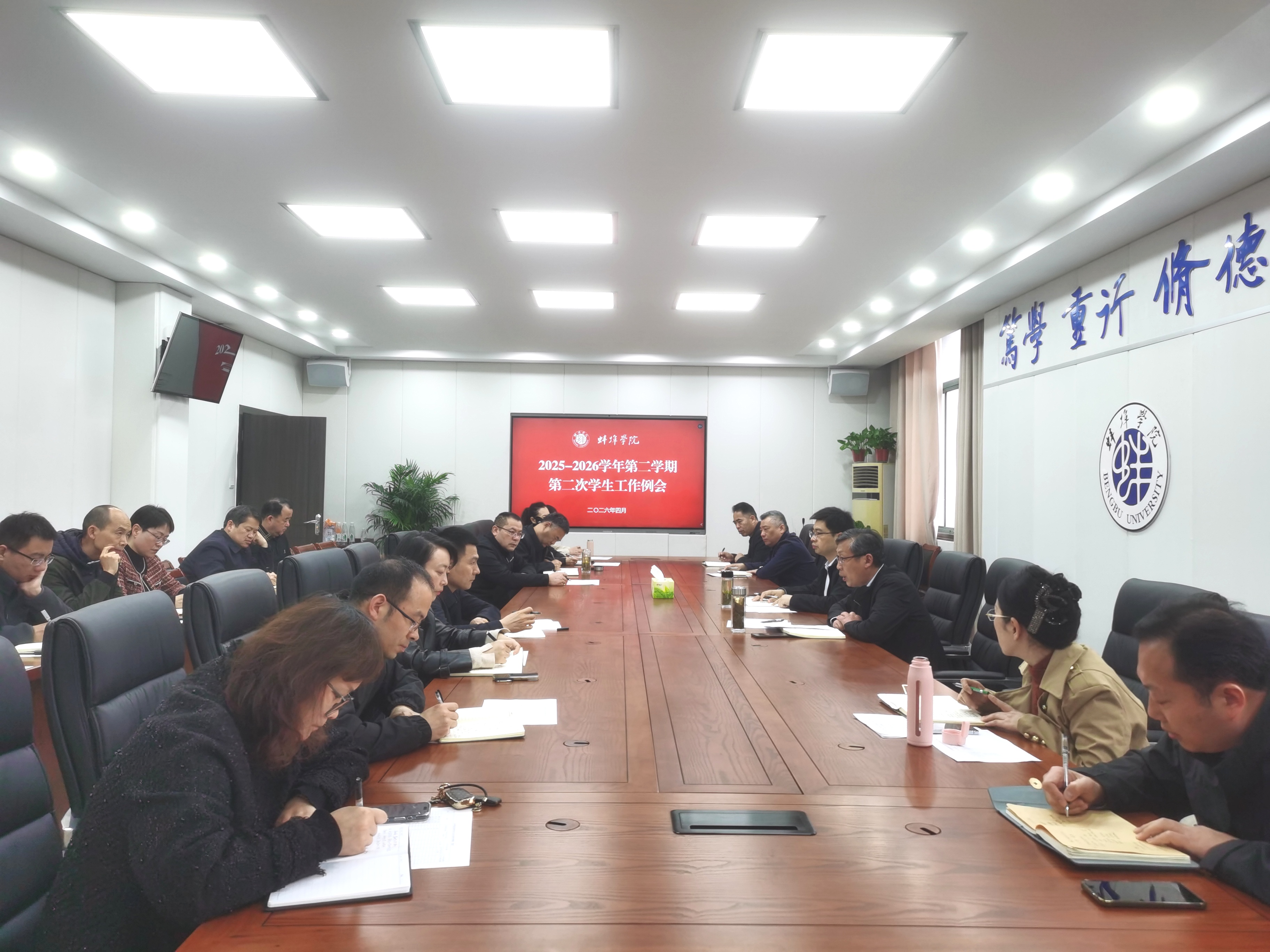 方贤文在会上就做好近期学生管理服务工作提出四点要求。一要持续抓好校园安全稳定。各部门各学院要时刻关注师生动态,筑牢意识形态安全防线,围绕交通、消防、饮食等多个重点领域,有力筑牢校园安全屏障。二要切实优化学生教育管理。各部门各学院要坚持问题导向,抓好标志性成果,不断提升学生管理服务水平。三要强化就业育人实效。各学院要压实责任链条,精心组织各类招聘会,多渠道拓展就业岗位,加强就业安全教育,切实做好毕业生就业工作。四要着力加强值班值守。各级各类值班人员要明确工作职责,落细工作措施,确保校园安定有序。