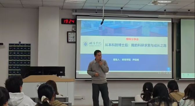 为充分发挥优秀科研人才的榜样引领作用,营造勤学善思、追求卓越的学术生态,4月9日晚7时,电子与电气工程学院于教学楼G楼106教室成功举行第44期“TA是我的榜样”主题分享会。本次活动特邀杨曦、尹延峰、阚瑞祥三位优秀青年博士学者,围绕求学心路、科研方向与成长体悟展开深度交流,学院各年级学子踊跃参与,现场气氛热烈。