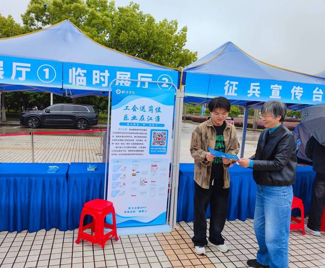 4月22日下午,在学校2026届毕业生春季校园双选会现场,校工会同步举办“工会送岗位职工之家APP就业服务云”就业信息平台宣传活动。