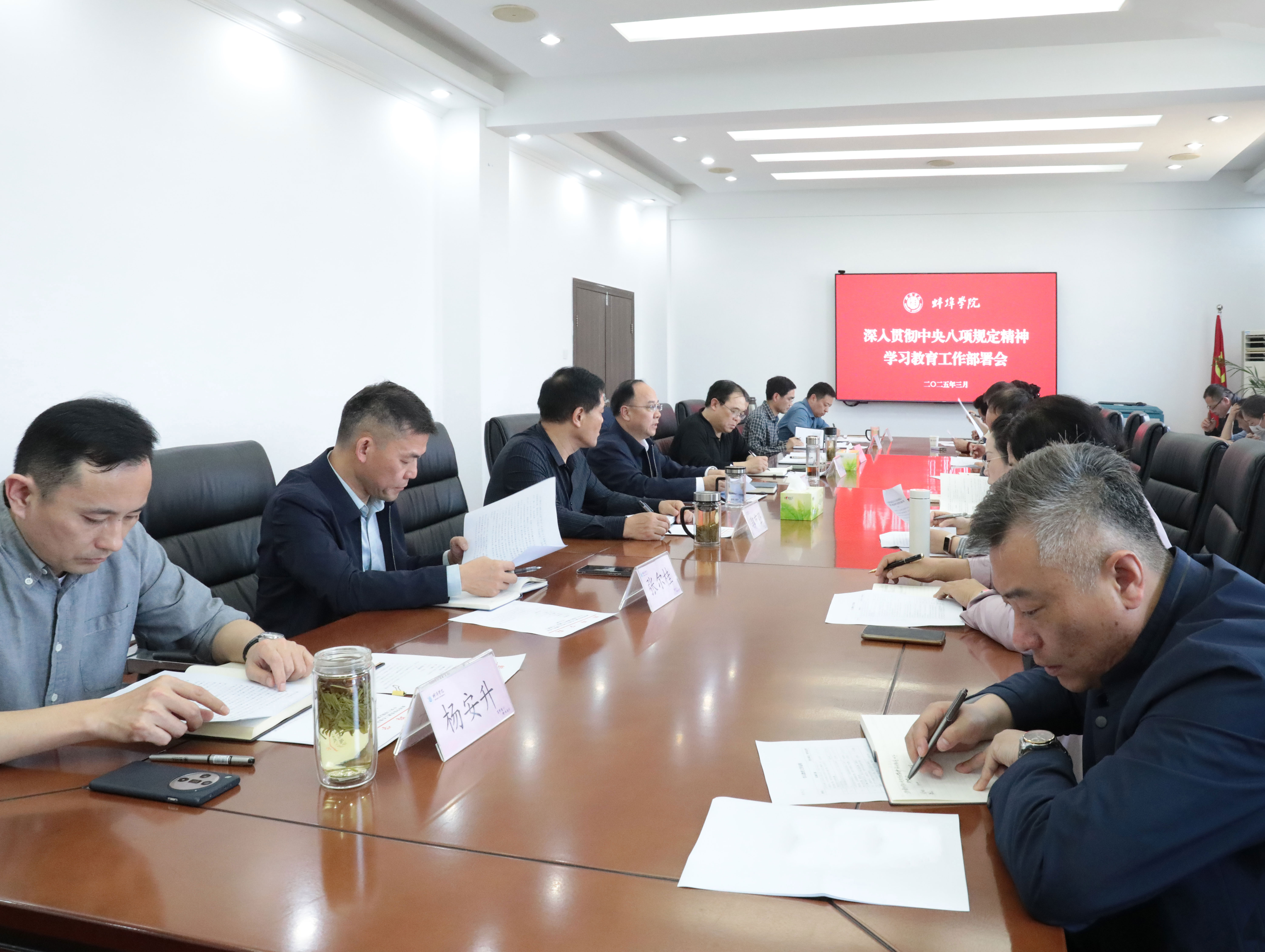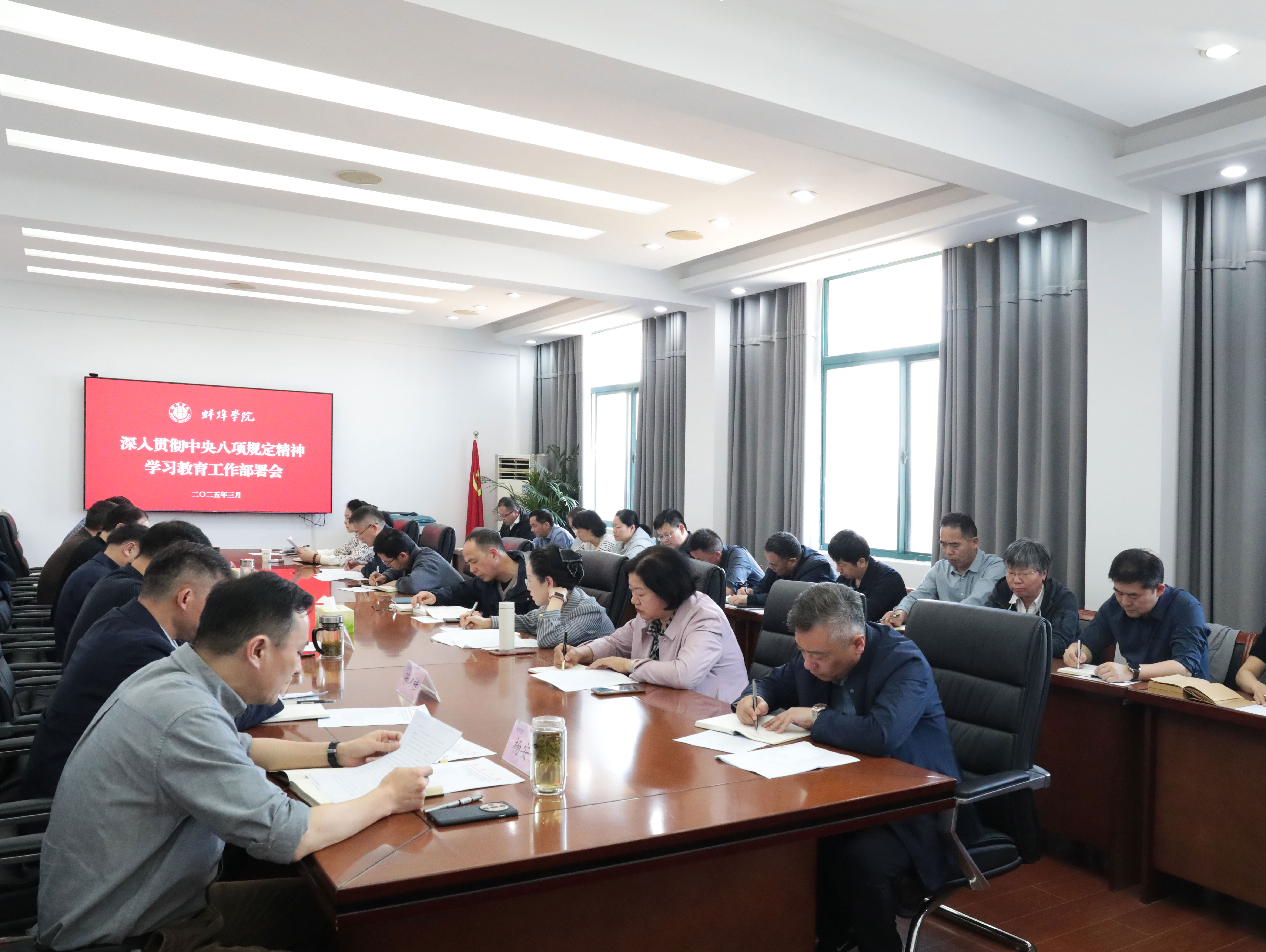 会议指出,开展深入贯彻中央八项规定精神学习教育,是巩固深化主题教育和党纪学习教育成果、纵深推进全面从严治党的重要举措,是密切党群干群关系、巩固党的执政基础的必然要求,是推进中国式现代化的有力保障。学校党员、干部要充分认识这次学习教育的重要意义,推动党中央各项决策部署落到实处,切实把学习教育成果转化为营造风清气正的政治生态和育人环境、加快推进学校地方应用型高水平大学建设和服务教育强国建设的坚强保证和强大动力。
