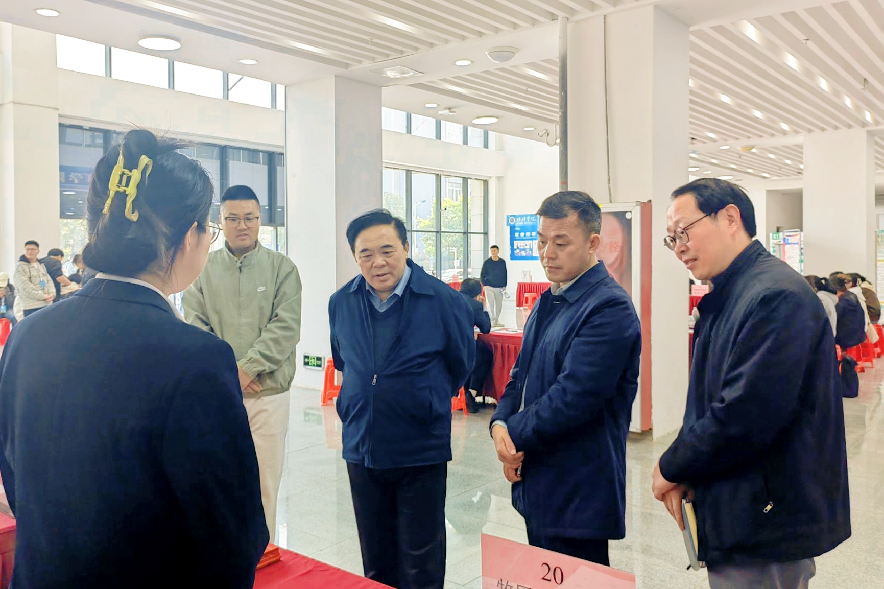 韦文联、张尔桂与参会企业亲切交谈,对他们的到来表示热烈的欢迎。他们表示,本次招聘会是学校构建全链条就业服务体系的重要一环,学校将持续深化校企协同,从专业设置、实践教学到就业服务全面对接产业需求,为毕业生铺就高质量就业快车道,为社会输送更多厚基础、强能力、敢担当的新时代英才。衷心希望,参会企业能够经常性来校招聘宣讲,对于已经录取的毕业生能够持续关注,做深做实推进校企人才需求对接。