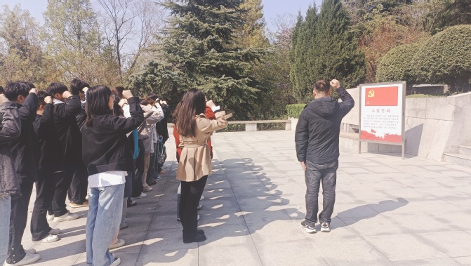 在蚌埠市革命烈士纪念碑前,全体党员及入党积极分子庄严肃立,向革命先烈默哀致敬,表达对先烈们的深切缅怀和崇高敬意。随后,袁诚琨老师带领全体党员重温入党誓词,大家在庄严的宣誓中再次坚定了入党初心和使命担当。