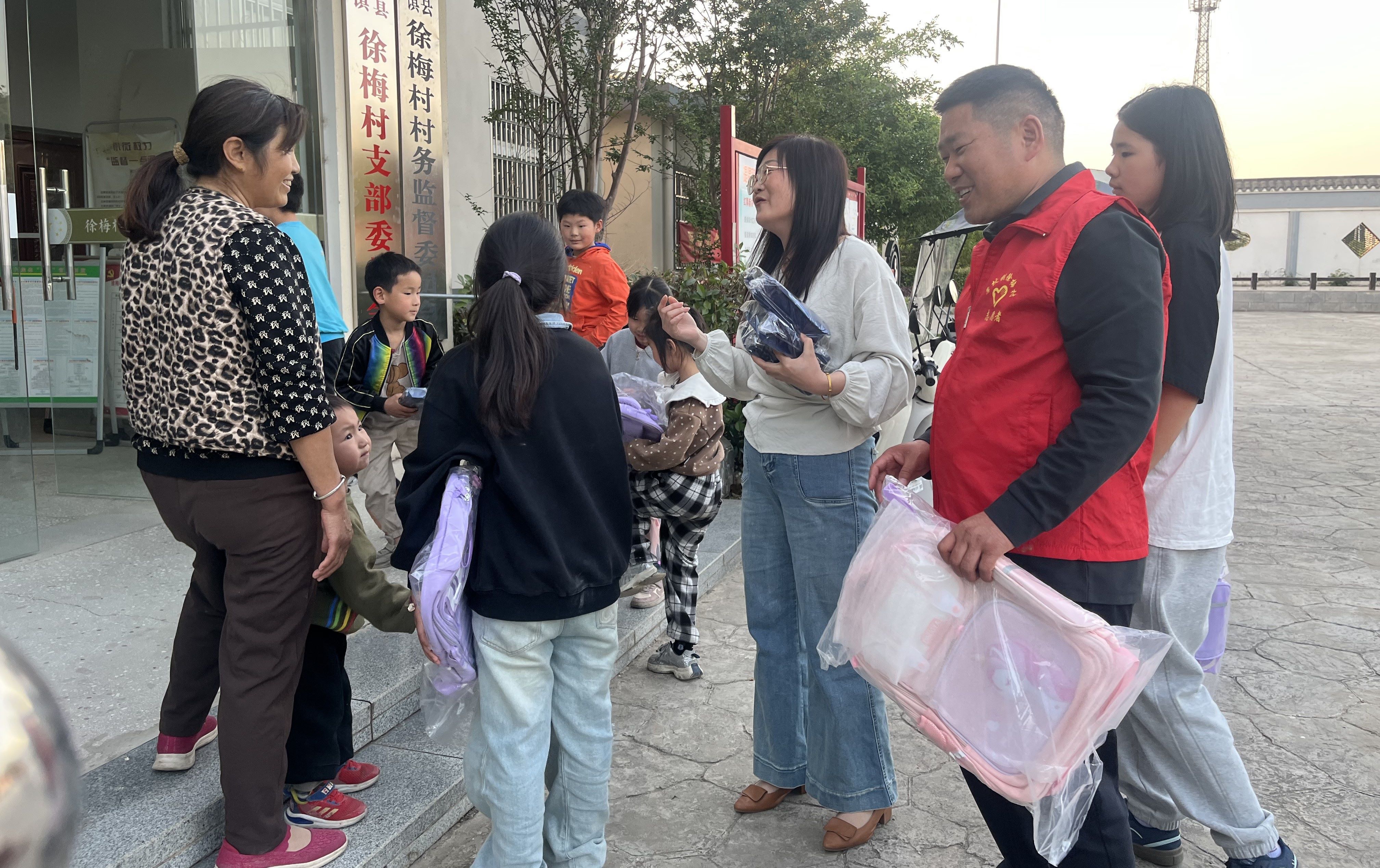 4月25日上午,2026世界杯官网关工委代表再次走进怀远常坟镇徐梅村,为35名留守学生送上书包文具。这项连续三年的“护苗助学”行动,正通过“五老+青年+云端”三维联动,构建起“扶志+扶智”的特色关爱体系。