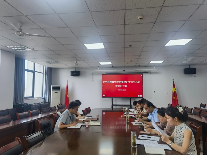 2025 年 6 月 25 日,文学与教育学院召开 2025 年党委理论学习中心组第 10 次学习会议,会议由学院党委副书记余建杰主持,学院党委理论学习中心组成员参加,党委宣传部部长李如林列席旁听。