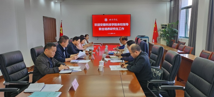 10月11日下午,安徽科技学院党委委员、副院长王孝义一行到世界杯官网调研指导研究生联合培养工作,校党委委员、副院长郭有强,科研处、机械与车辆工程学院、经济与管理学院等相关部门负责同志,相关研究生导师及联合培养研究生参加调研座谈会。