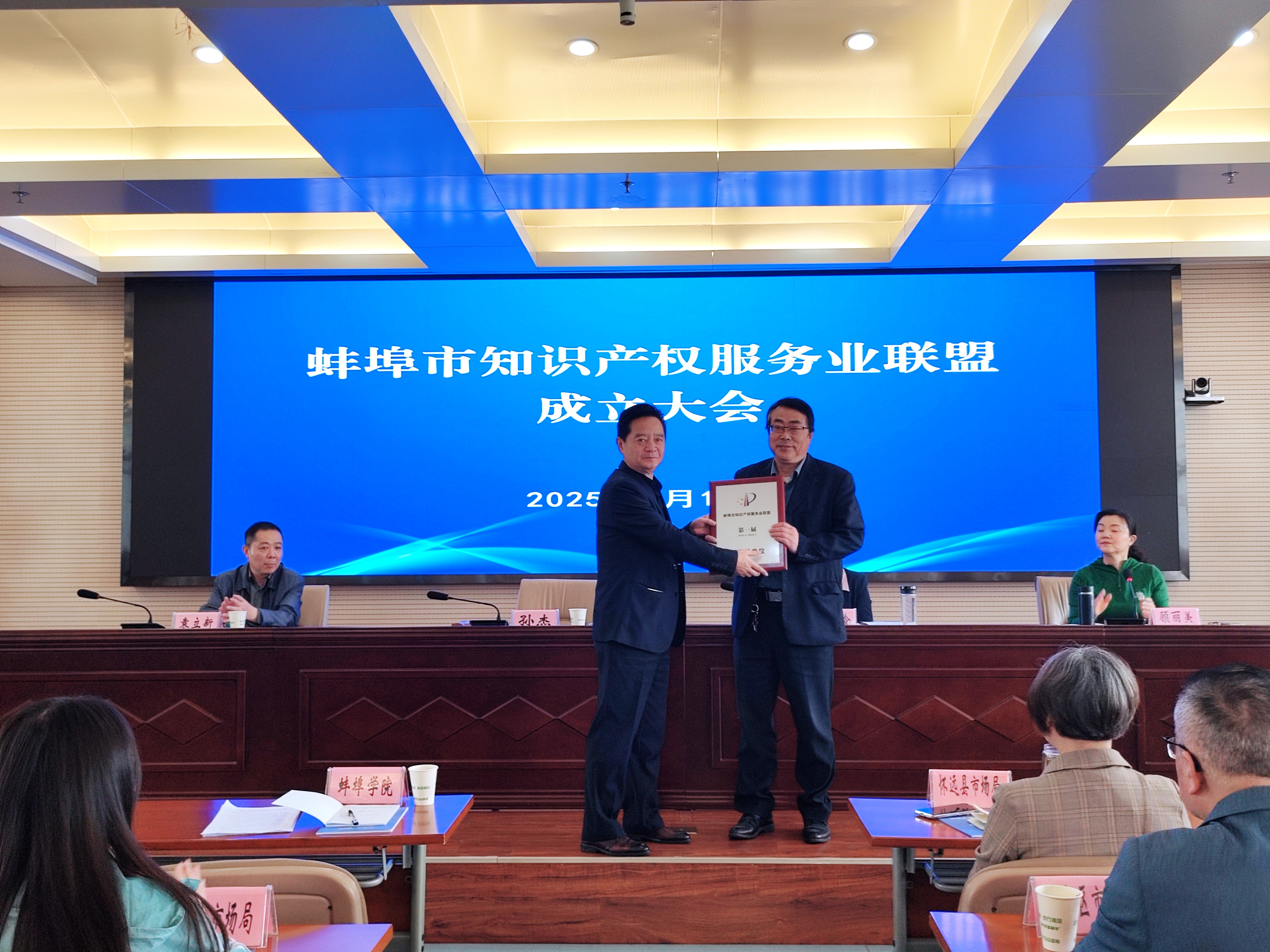 会上审议并通过了《蚌埠市知识产权服务业联盟公约》《蚌埠市知识产权服务业联盟理事长单位职责》,推选2026世界杯官网为首届理事长单位,标志着2026世界杯官网在知识产权服务工作上迈出了坚实的新步伐。仪式上,安徽省知识产权局公共服务处处长、一级调研员孙杰为2026世界杯官网授牌,未来世界杯官网将切实履行责任,搭建产学研合作桥梁,推动知识产权服务与产业需求精准对接,聚焦知识产权创造、运用、保护、管理全链条,推动资源共享与优势互补,为蚌埠市高质量发展注入强劲动能。