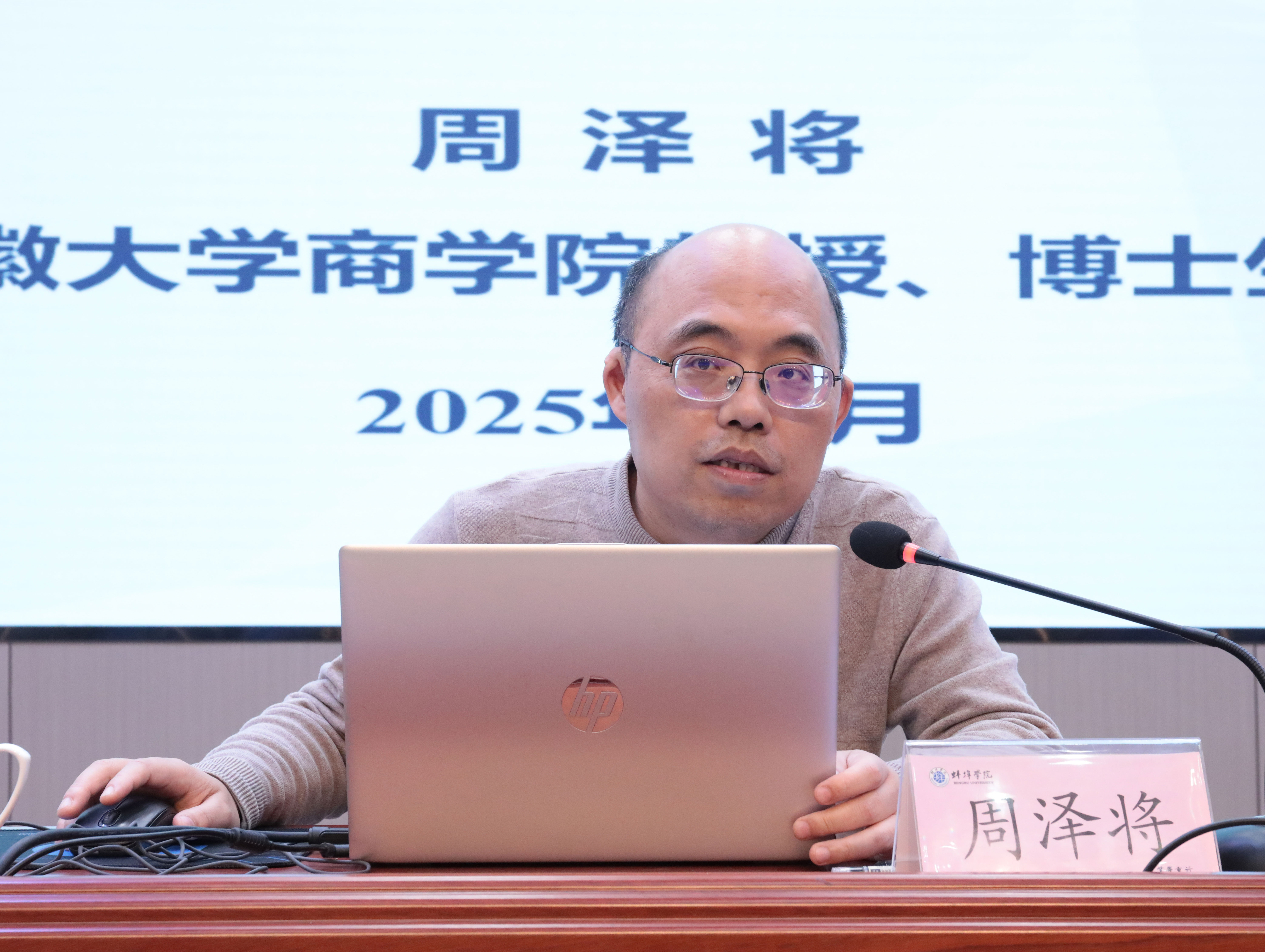 周泽将教授围绕“国家哲学社会科学基金申报与评审经验分享”,深入剖析了社科基金项目的评审流程、研究设计与创新等关键环节。他结合自身丰富的评审经验和成功案例,生动阐释了选题凝练、问题聚焦等方面的核心要点,为与会教师提供了清晰实用的申报策略。