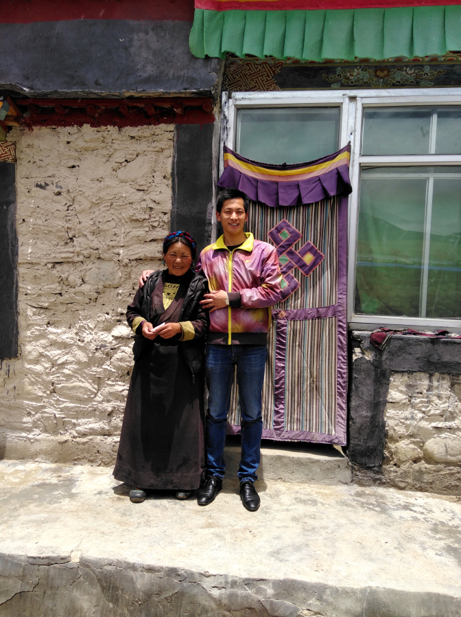 蔡宏升学长与结对帮扶贫困户合影