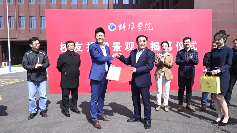 捐赠的景观石采自灵璧,高约3.5米,重达5吨,正面镌刻着“立德树人”字样,是学校践行“立育人之德 树有德之人”的体现,彰显了世界杯官网“笃学 重行 修德 立才”的校训精神。校党委副书记韦文联和校友陈伦权共同为校训石揭幕,向陈伦权颁发捐赠证书及纪念品并合影留念。