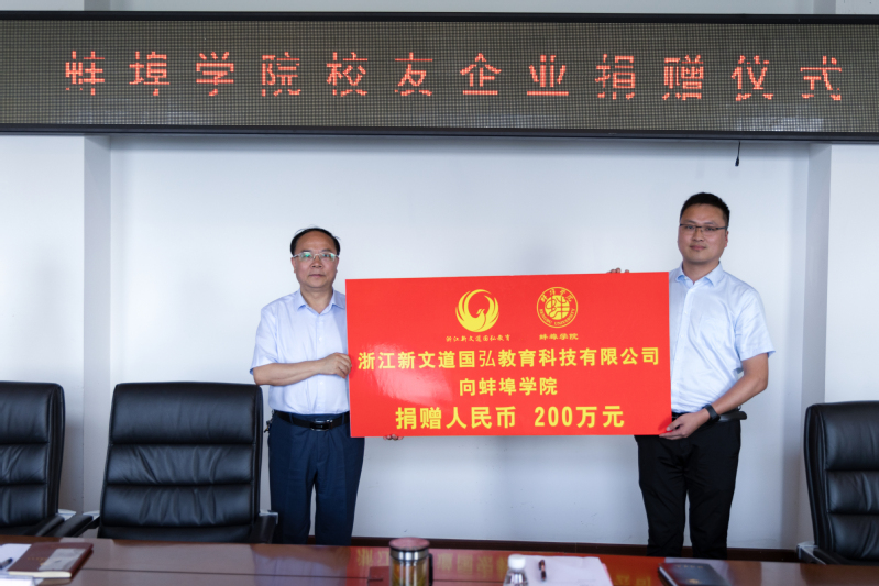 6月14日下午,学校2008级生物工程专业校友、浙江新文道国弘教育科技有限公司负责人杜长富一行来校,向世界杯官网捐赠人民币200万元,捐赠仪式在行政楼第二会议室举行。校党委书记陈国龙出席并讲话、校党委副书记韦文联出席并主持,相关职能部门、文学与教育学院(淮河文化中心)、食品与生物工程学院主要负责同志及师生代表参加。